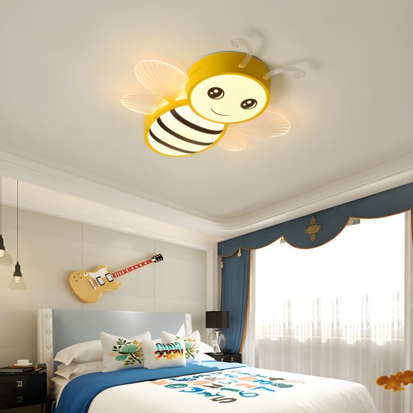 Whimsical Bee Cartoon Flush Mount Ceiling Light for Kids Bedroom and Nursery - Yellow 110V-120V White Light