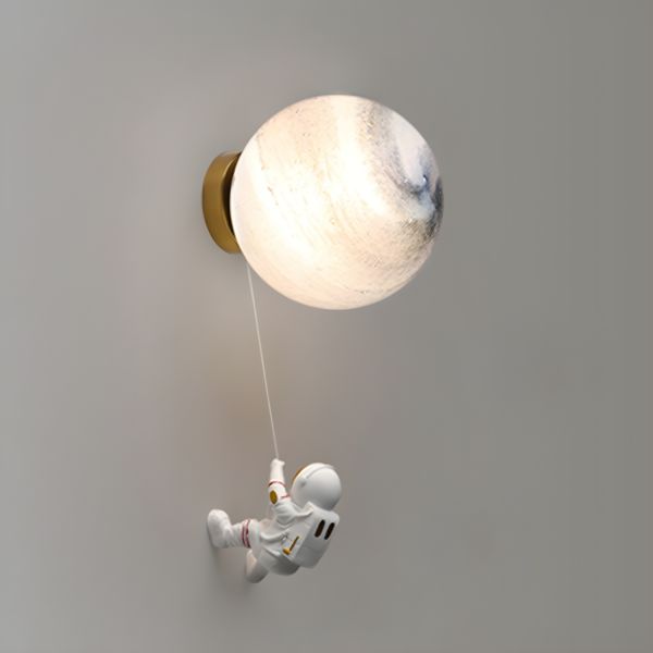 Whimsical Astronaut Wall Sconce with Textured Planetary Globe Shade - 110V-120V Blue 8"
