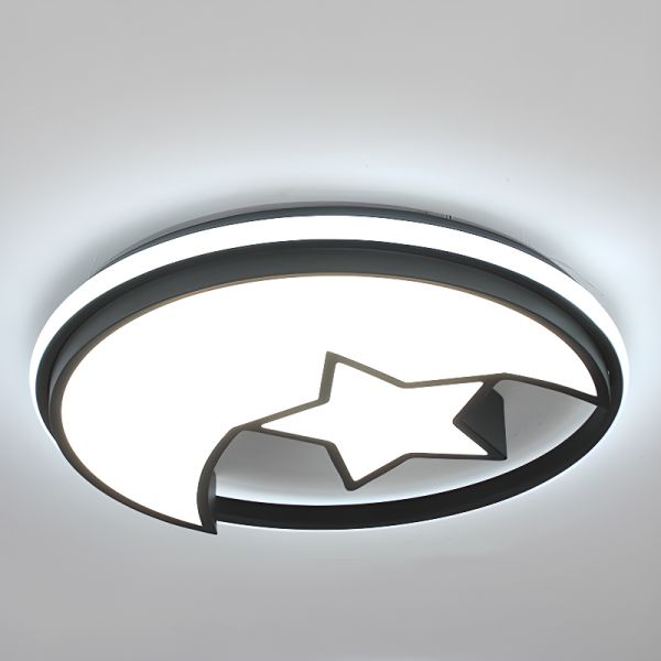 Star-Shaped Kids Flush Mount LED Ceiling Light, White Shade, Metal Construction - Black 110V-120V 16" White Light