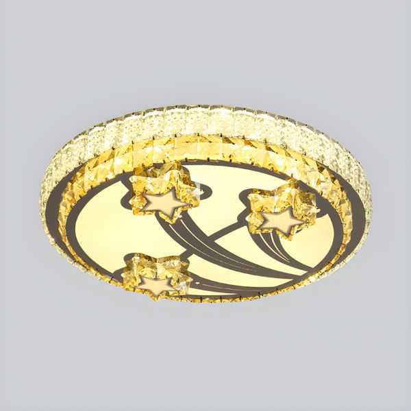 Glam Crystal Flush Mount Ceiling Light, Dimmable LED Fixture with Champagne Accents for Bedroom - Star 110V-120V Third Gear (Warm/White/Neutral Light of Dimming)