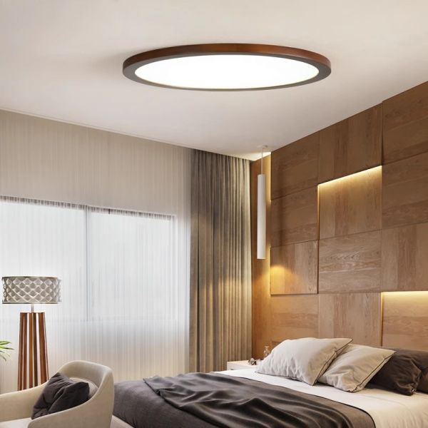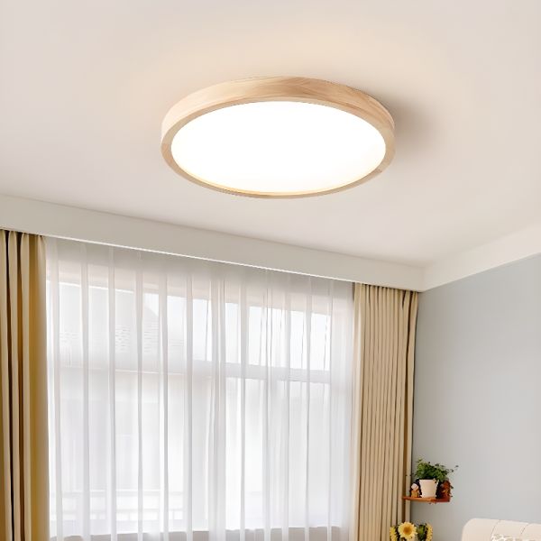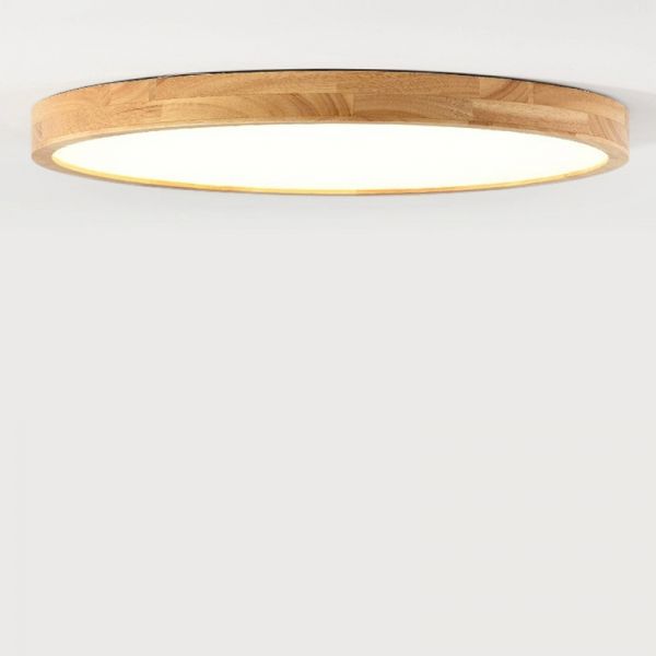 Scandinavian Solid Wood Flush Mount Ceiling Light, Ultra-Thin LED Fixture - 110V-120V 12" Circle