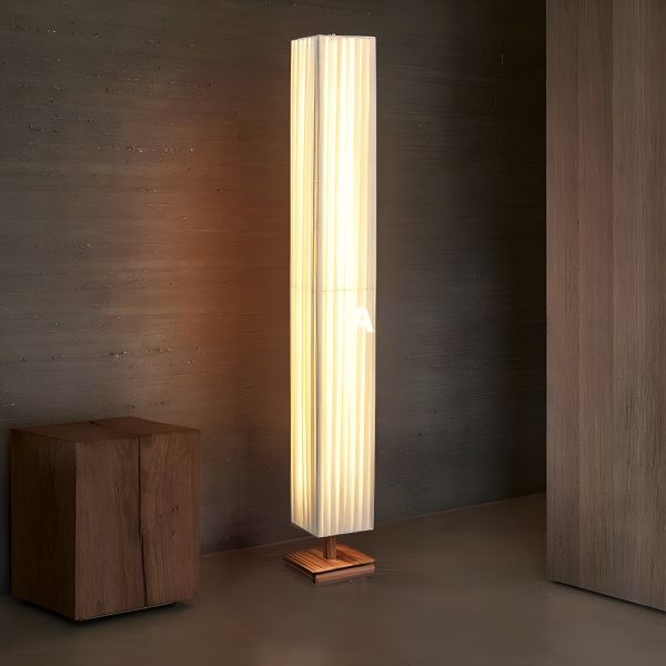 Japandi Solid Walnut Floor Lamp, Tall Pleated Linen Shade for Soft Ambient Lighting - 110V-120V 47.5"