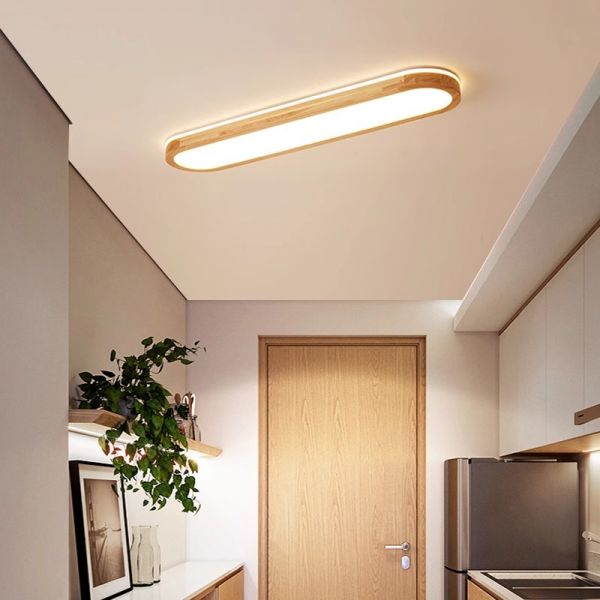 Scandinavian Oval LED Flush Mount Light, Linear Wood Ceiling Fixture for Hallway Living Room - Natural Finish 110V-120V 23.5" White Light