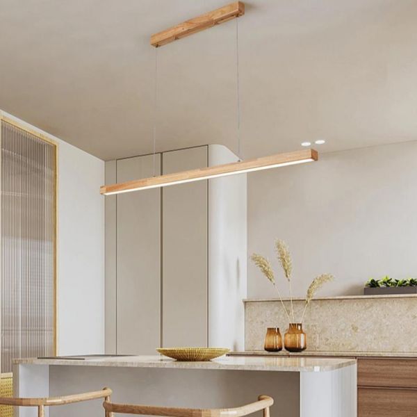 Nordic Minimalist Solid Wood Linear Pendant Light, LED Island Chandelier with Adjustable Height - 110V-120V Warm Light 31.5"