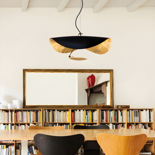 Modern Creative LED Pendant Light Gold Foil Indoor Hanging Lamp with Iron Shade - 110V-120V Black/Gold 16"
