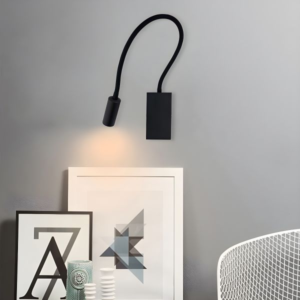 Minimalist LED Bedside Reading Light with Built-in USB Port and Adjustable Flexible Gooseneck - 110V-120V Black Square