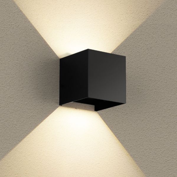 Contemporary Cube LED Wall Sconce, Adjustable Beam Up Down Outdoor Light Fixture, Aluminum Housing - 110V-120V Black 4" White Light
