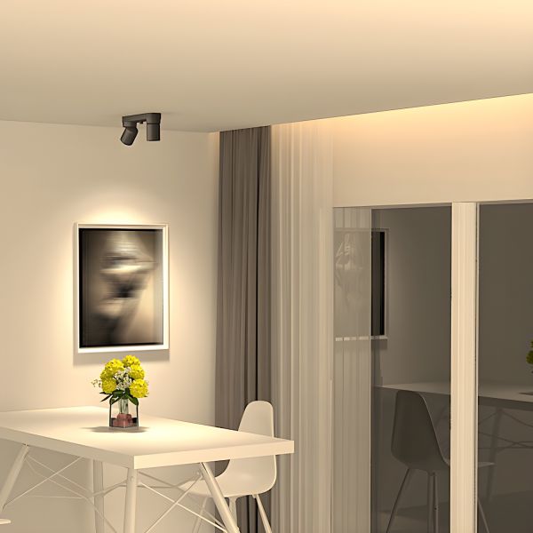Minimalist Dual Head Surface Mount Spotlight, Adjustable Directional LED Ceiling Fixture - Black White Light 110V-120V