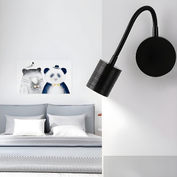 Scandinavian Minimalist LED Wall Sconce, 350° Rotatable Reading Light with Adjustable Spotlight Head - 110V-120V Black White Light