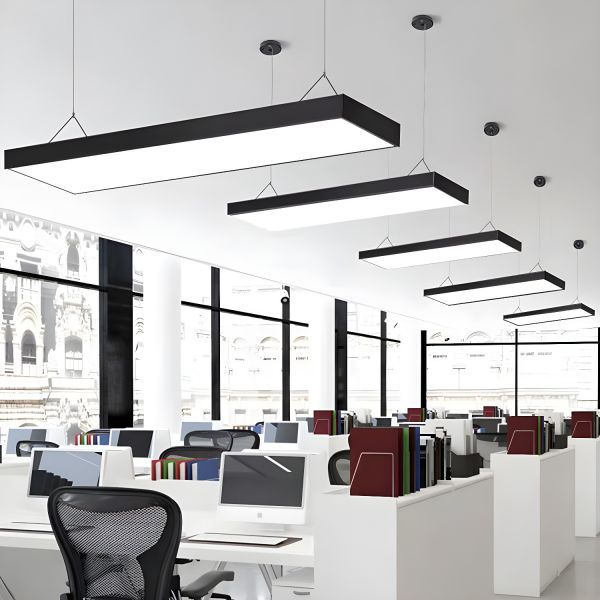 Led Pendent in Modern Style Rectangle Led Suspended Lights for Conference Room - 110V-120V Black 12" Straight Angle