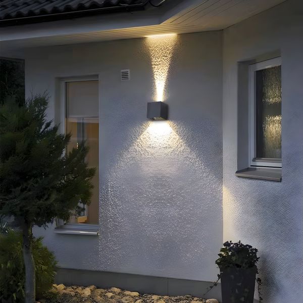 Minimalist Aluminum Wall Sconce, Architectural Up/Down Light Fixture with Weather-Resistant Finish - 110V-120V Black Square