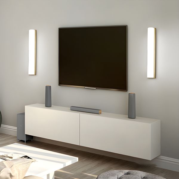 Scandinavian Linear LED Wall Sconce with Gold Antler Accent and Ambient Backlighting - 110V-120V 24" Warm Light
