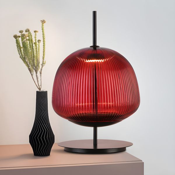 Scandinavian Fluted Glass Table Lamp for Ambient Bedroom Lighting - 110V-120V Red
