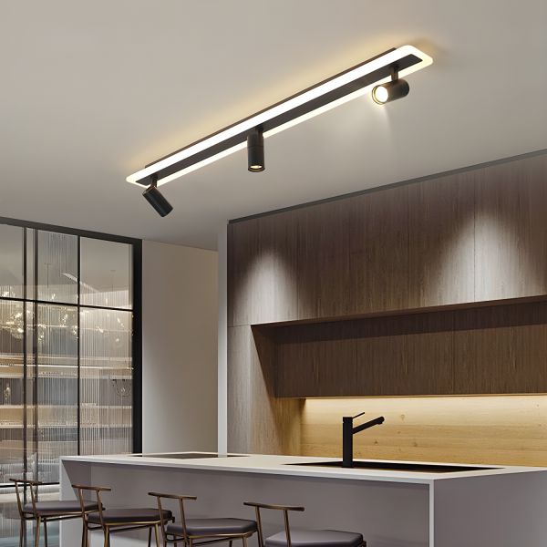 Architectural Linear LED Flush Mount Light with Rotatable Spotlights for Modern Interiors - 110V-120V Black 39.5" Warm Light