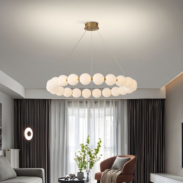 Nordic Geometric LED Halo Chandelier, Gold Finish with Frosted Spheres - 110V-120V 24"