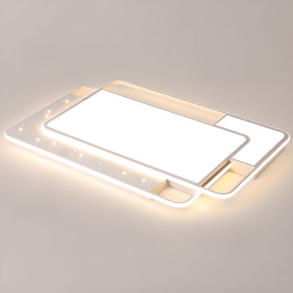 Contemporary Geometric LED Flush Mount Ceiling Light, Acrylic Fixture with Starry Accent - 110V-120V Rectangle White Light