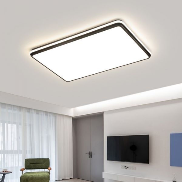 Sleek Geometric LED Flush Mount Light, Low-Profile Matte Black Fixture with Eye-Care Diffuser - 110V-120V Rectangle Large