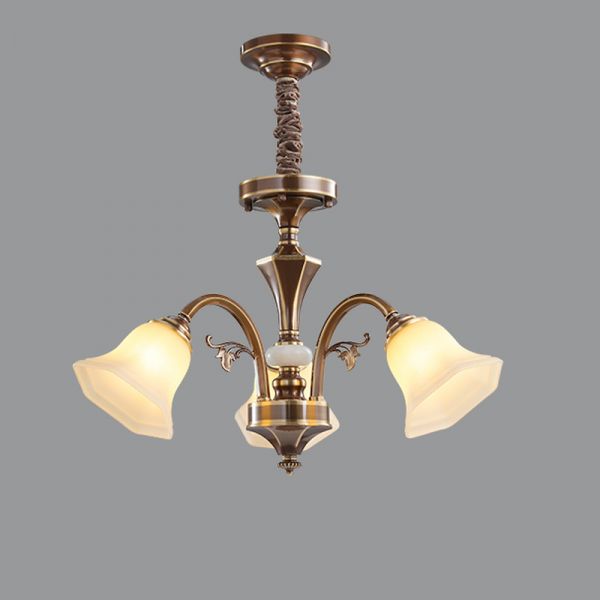 Bell Shaped Light Chandelier with Ceramics Shade and Adjustable Hanging Rod, 3, 110V-120V