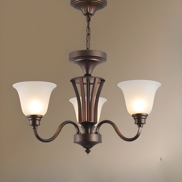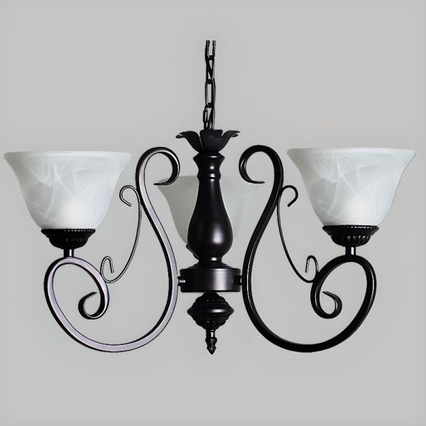 Classic Rustic Iron Chandelier with Alabaster Glass Shades for Dining and Living Room - 110V-120V 3