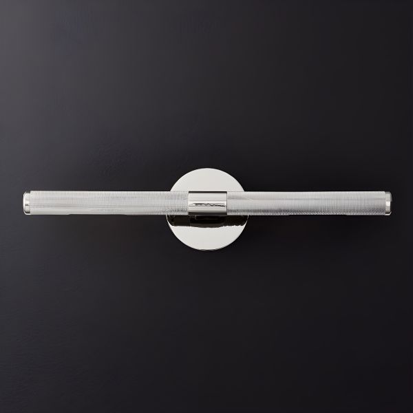 Industrial Luxe Solid Brass Vanity Light, Linear Knurled Wall Sconce for Bathroom Mirror - 110V-120V Chrome
