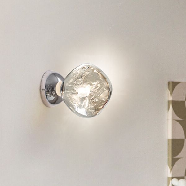 Avant-Garde Melted Globe Wall Sconce, Sculptural Ambient Accent Light - Chrome Plastic 110V-120V 11"