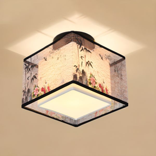Square/Round Light Fixtures Asia Style Flush Light with Fabric Shade for Foyer - Square 110V-120V Lotus