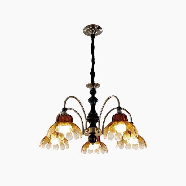 Translucent Ceiling Lamp with Transparent Glass Geometric Vitreous Shade, 3 Lights and String for Residential Use, 110V-120V, Nut/Brown, 27.5"