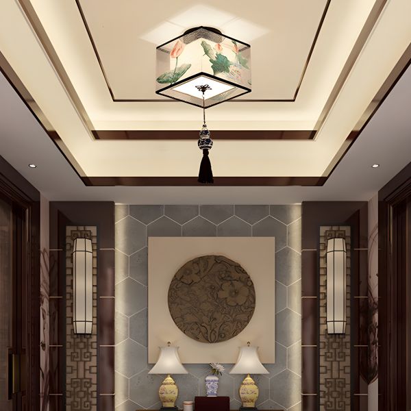 Square/Round Light Fixtures Asia Style Flush Light with Fabric Shade for Foyer - Square 110V-120V Lotus