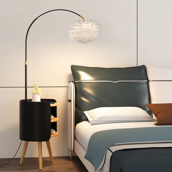 Luxury Multi-Functional Arc Floor Lamp Wireless Charging & Storage Table for Living Room & Bedroom - 110V-120V White/Black Built-in Wireless Charger Included