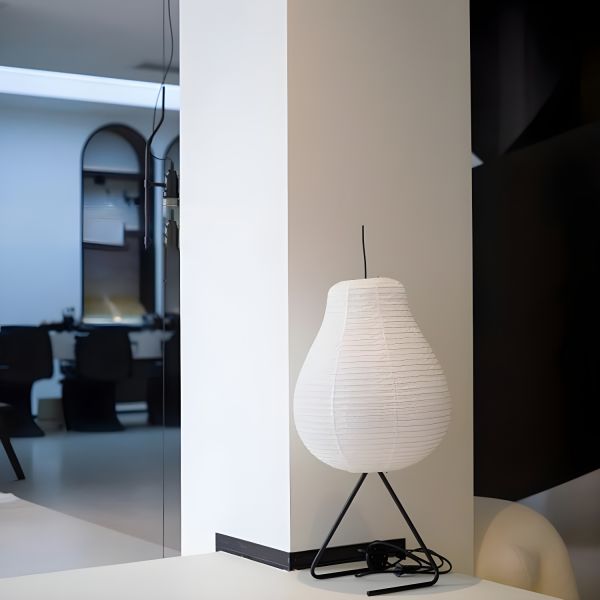 Wabi-Sabi Rice Paper Lantern Lamp with Black Tripod Stand and Soft Ambient Glow - 110V-120V off-white Pear
