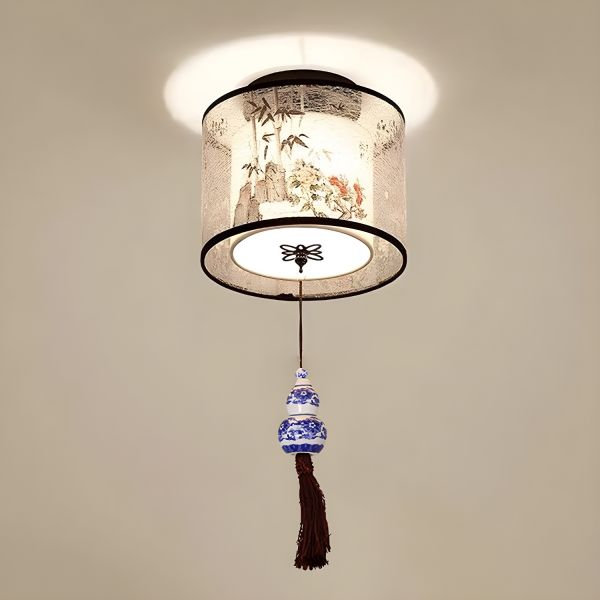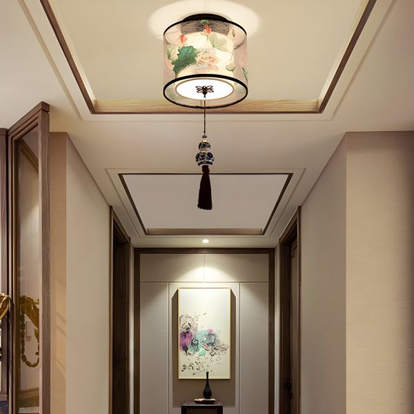 Square/Round Light Fixtures Asia Style Flush Light with Fabric Shade for Foyer - Drum 110V-120V Lotus