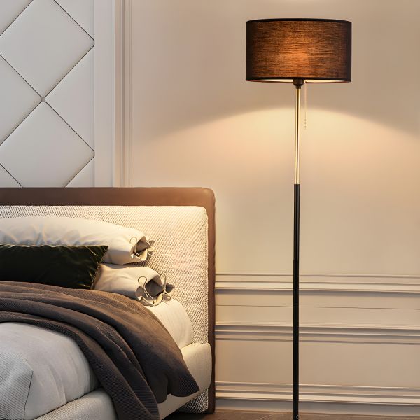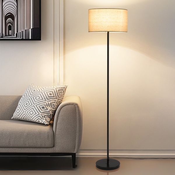 Modern Transitional Drum Shade Floor Lamp Linen Fabric Shade with Iron Frame for Living Room & Bedroom - 110V-120V Black