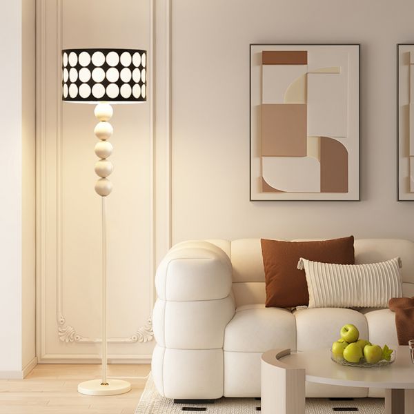 Postmodern Stacked Ball Floor Lamp with Fabric Shade, Geometric Standing Light for Living Room Bedroom - Black/white Drum 110V-120V