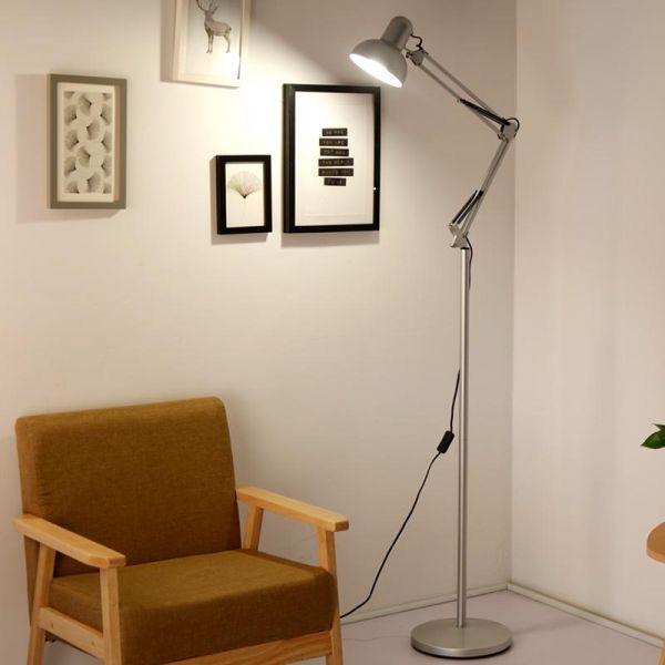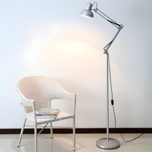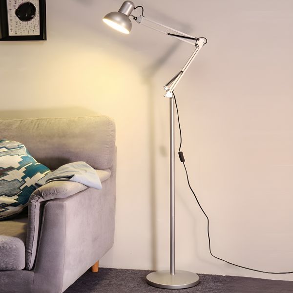 Industrial Swing Arm Floor Lamp, Adjustable Architect Standing Task Light for Living Room or Office - 110V-120V Silver