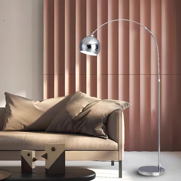 Mid-Century Arc Floor Lamp Large Curved Overarching Standing Light - 110V-120V Chrome