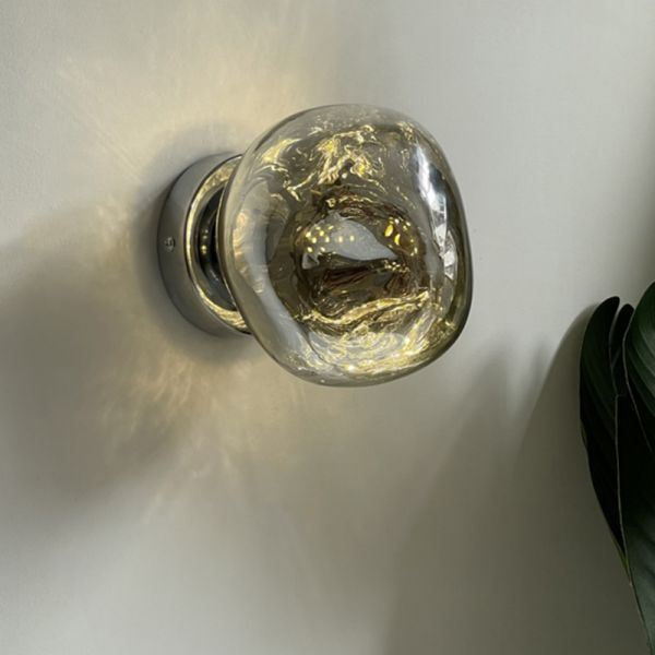 Avant-Garde Melted Globe Wall Sconce, Sculptural Ambient Accent Light - Silver Plastic 110V-120V 6.5"