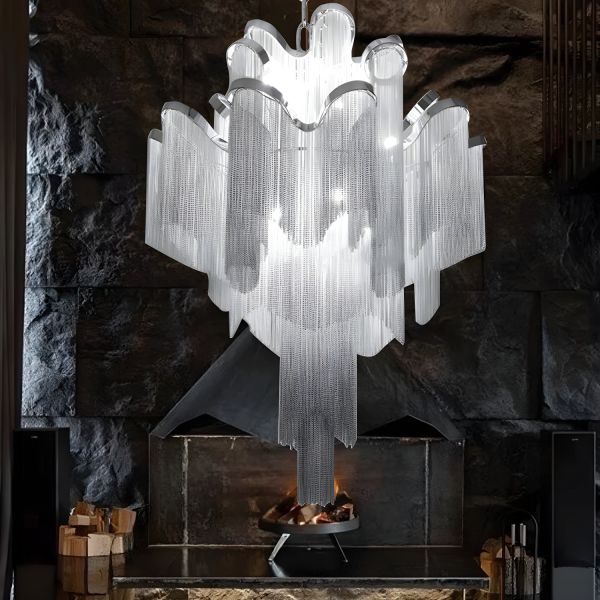 Art Deco Waterfall Chain Chandelier, Tiered Tassel Pendant Light for High Ceilings - 110V-120V Silver