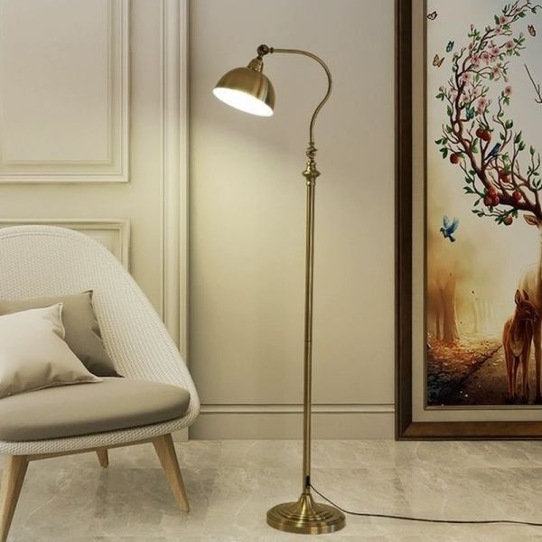 Vintage Antique Brass Floor Lamp with Adjustable Gooseneck Arm & Stable Base - Dome Traditional 110V-120V
