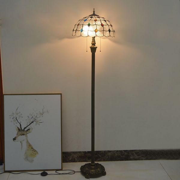 Vintage Tiffany-Style Stained Glass Floor Lamp with Dual Pull Chains and Antique Bronze Base - 110V-120V Silver