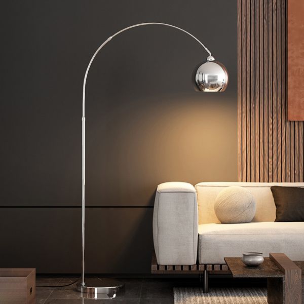 Minimalist Globe Arc Floor Lamp Spherical Metal Shade with Iron Frame for Living Room & Bedroom - 110V-120V Chrome 33"