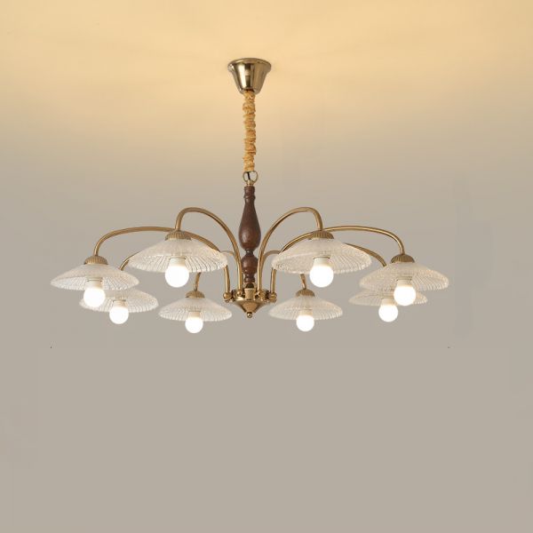 8 Lights Chandelier with Downlight, Regular Shape, Glass Shade, Chalk Color on Pendant Bar, Hardwired Power Source, 110V-120V