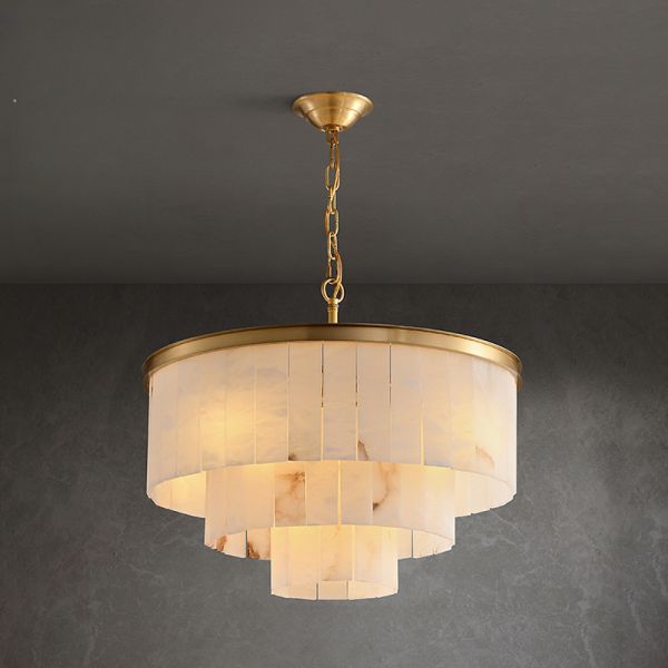 Sintered Stone 3 Tiers Light Chandelier with Adjustable Chain, 110V-120V, 24"