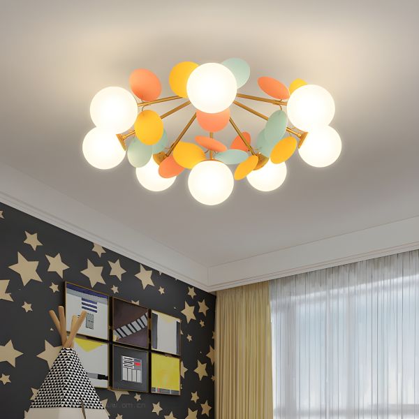 Multi-Color Semi Flush Light Contemporary Semi-Flush Mount with Balloon Acrylic Shade - Multi/Color 110V-120V 8 House