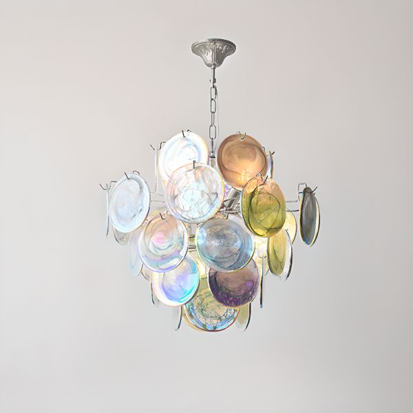 Mid-Century Glass Disc Chandelier, Art Deco Pendant Light for Dining Room Foyer - Multi/Color 110V-120V 24"