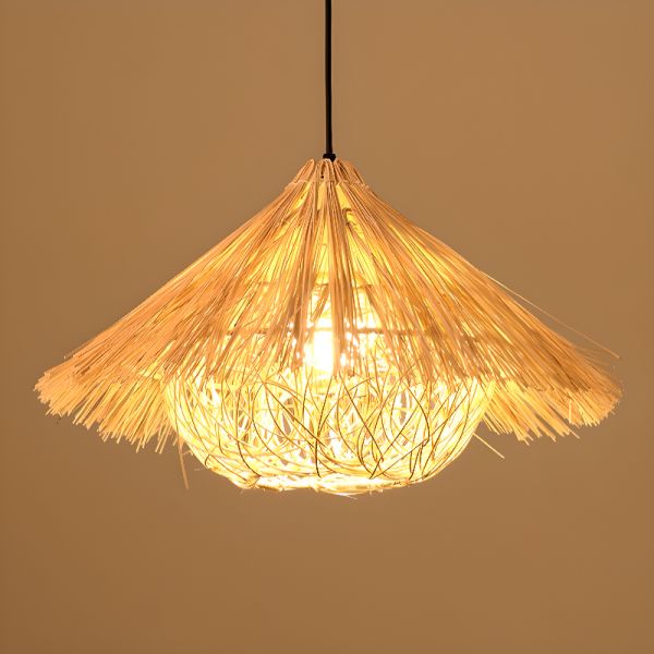 Japandi Bamboo Pendant Light, Hand-Woven Natural Rattan Hanging Lamp with Soft Glow Diffuser - 110V-120V Cone