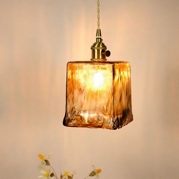 Brass Square Pendant Lamp with Vitreous Shade, 1 Light, LED & Incandescent/Fluorescent, Cordage Mounting, Adaptable Hanging Length, 110V-120V, Rectangle