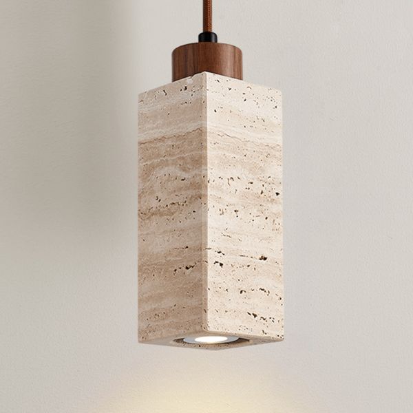 Japandi Natural Travertine Pendant Light, Hand-Finished Stone Hanging Lamp for Kitchen & Bedside - 1 110V-120V Rectangle