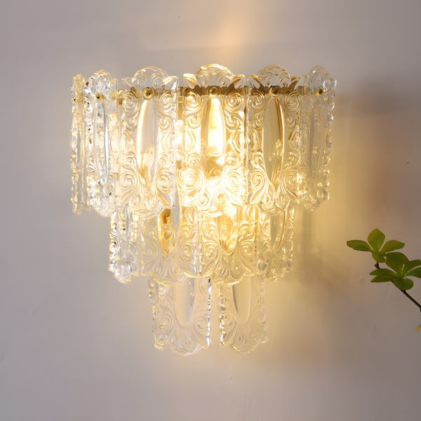 Art Deco Gold Wall Sconce, Textured Glass Vanity Light for Ambient Warmth, Vintage Glam Series - 110V-120V Rectangle