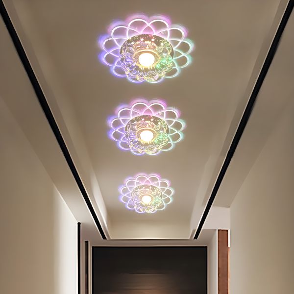 Contemporary Floral LED Flush Mount Light, Decorative Acrylic Crystal Ceiling Fixture for Hallway Entryway - 110V-120V Multi Color Light