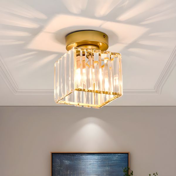 Elegant Gold Crystal Flush Mount Ceiling Light, Mini Fixture for Hallway Entryway - Gold 110V-120V Square